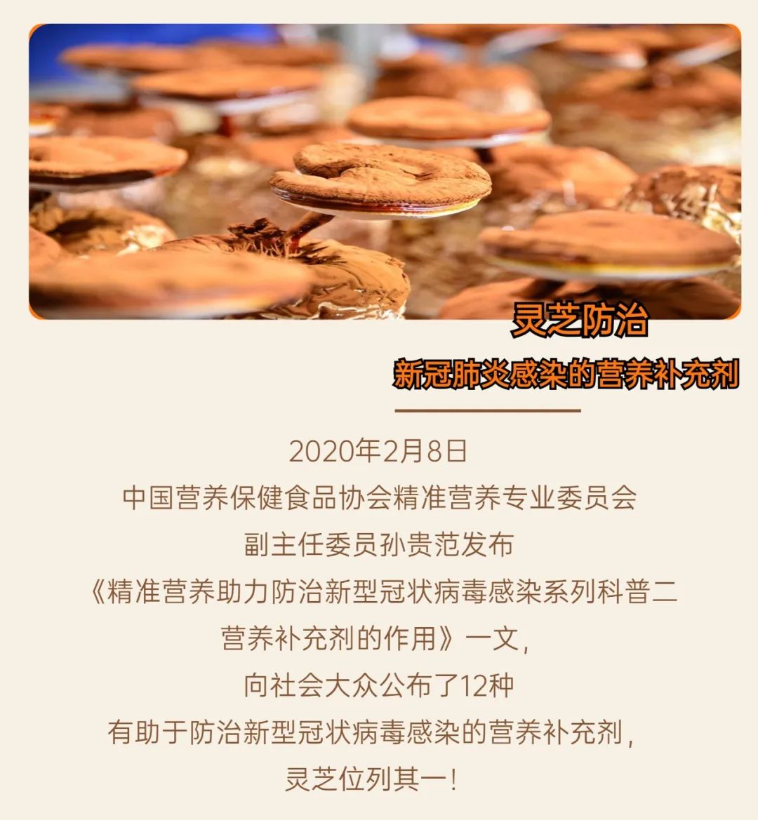 重磅消息!靈芝被推薦為防治新型冠狀病毒感染的營(yíng)養(yǎng)補(bǔ)充劑!